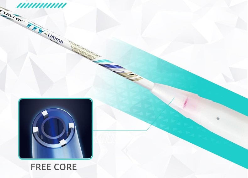 - Free Core: Tay cầm thế hệ mới được đúc từ vật liệu tổng hợp thay thế lõi gỗ truyền thống, giúp trục vợt dao động tự do, tăng độ dẻo và hạn chế rung chấn. Cảm giác cầm êm ái, chắc chắn và dễ kiểm soát hơn trong thời gian dài thi đấu.